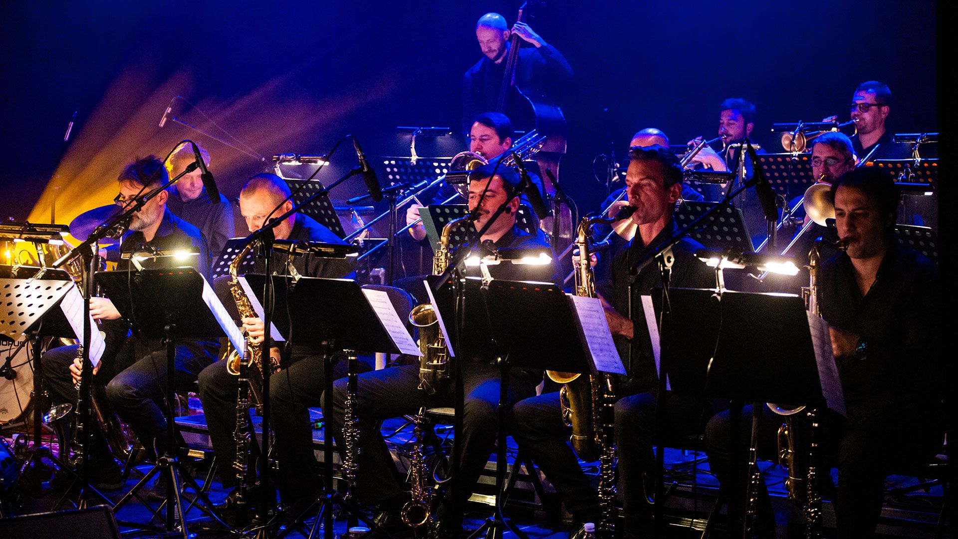 There is a particular kind of tension that builds in a room full of brass. Seventeen musicians, a conductor's signal, and then — something unexpected. Not the warm, burnished swing you anticipated. Something grittier. More electric. More now.
